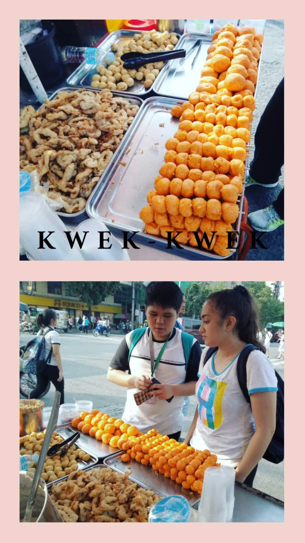 Kwek-Kwek is a boiled egg coated on deep-frying orange batter. One of the many filipinos favorites. A popular variation of tokneneng is kwek kwek. The main difference between the two lies in the egg that is used. Kwek kwek is traditionally made with quail eggs, while Tokneneng is made with chicken eggs. Due to their similarities, the two are often confused with some people calling tokneneng “kwek kwek” and vice versa. It is usually served with a spiced vinegar-based dip